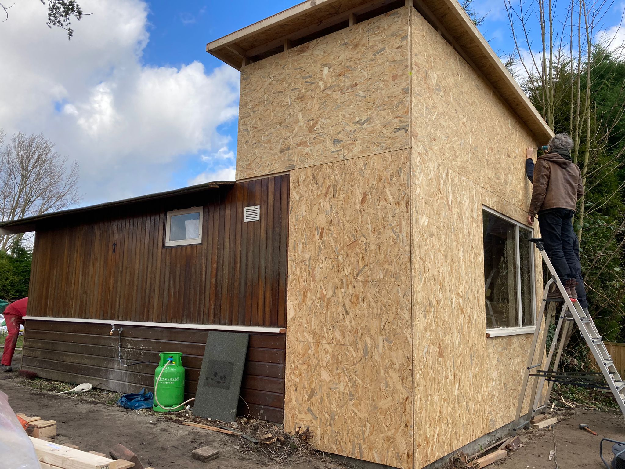 In de voorjaarsvakantie heb ik samen met met mijn zus en wat kennissen een aanbouw gebouwd voor haar tuinhuisje.