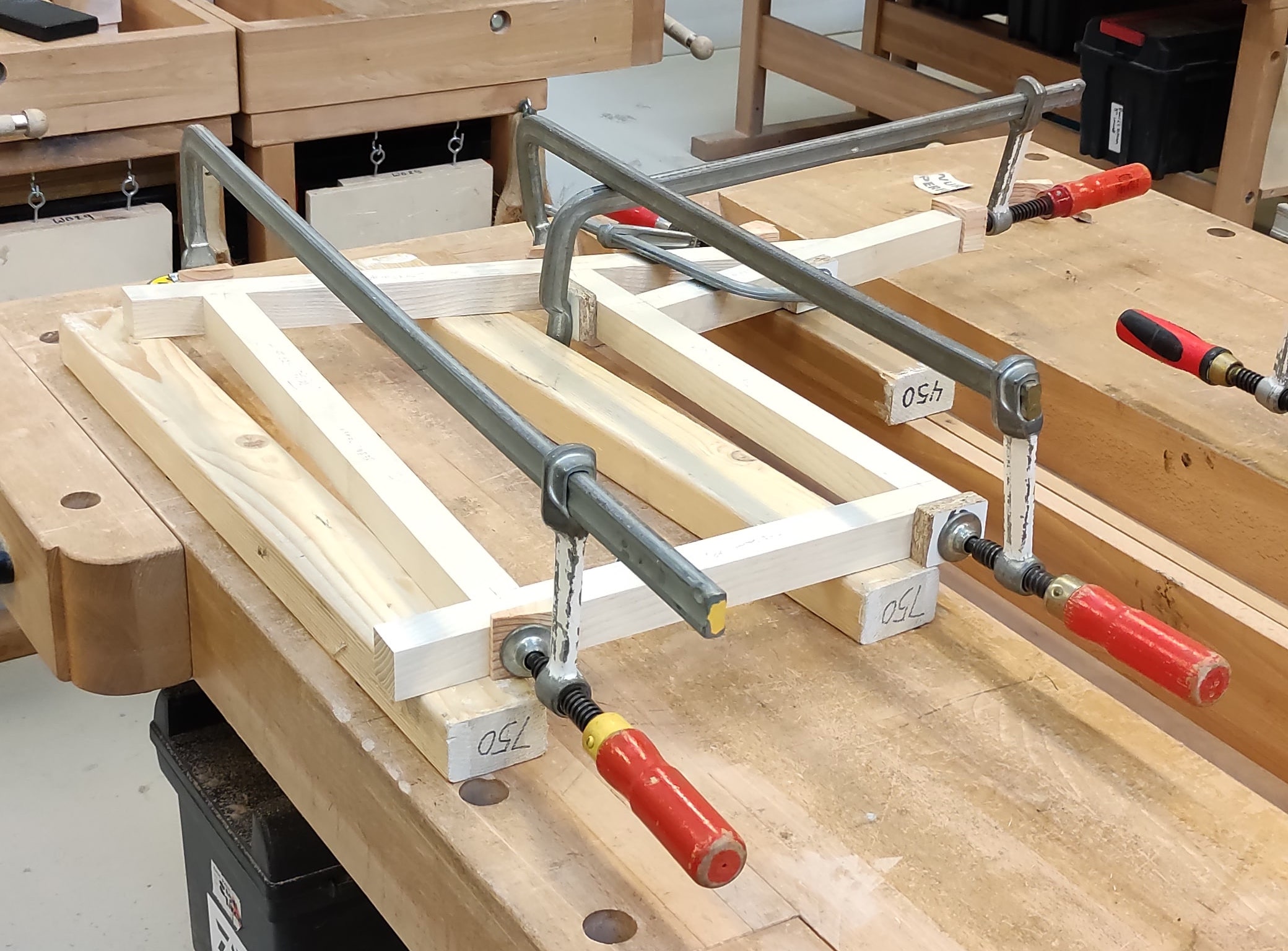 Ik heb deze stoel gemaakt van massief inlands essen. Inlands essen is een goeie keuze omdat het een duurzaam hout is omdat het inlands is. Verder ziet het er ook mooi uit met een mooie nerf. En het is ook nog eens heel betaalbaar. Hier is te zien hoe ik 1 van de zijdes van de stoel aan het verlijmen ben.